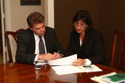 From their 2008 campaign, APFA Vice-President Brett Durkin and APFA President Laura Glading demonstrating how to sign a Side Letter of Agreement .